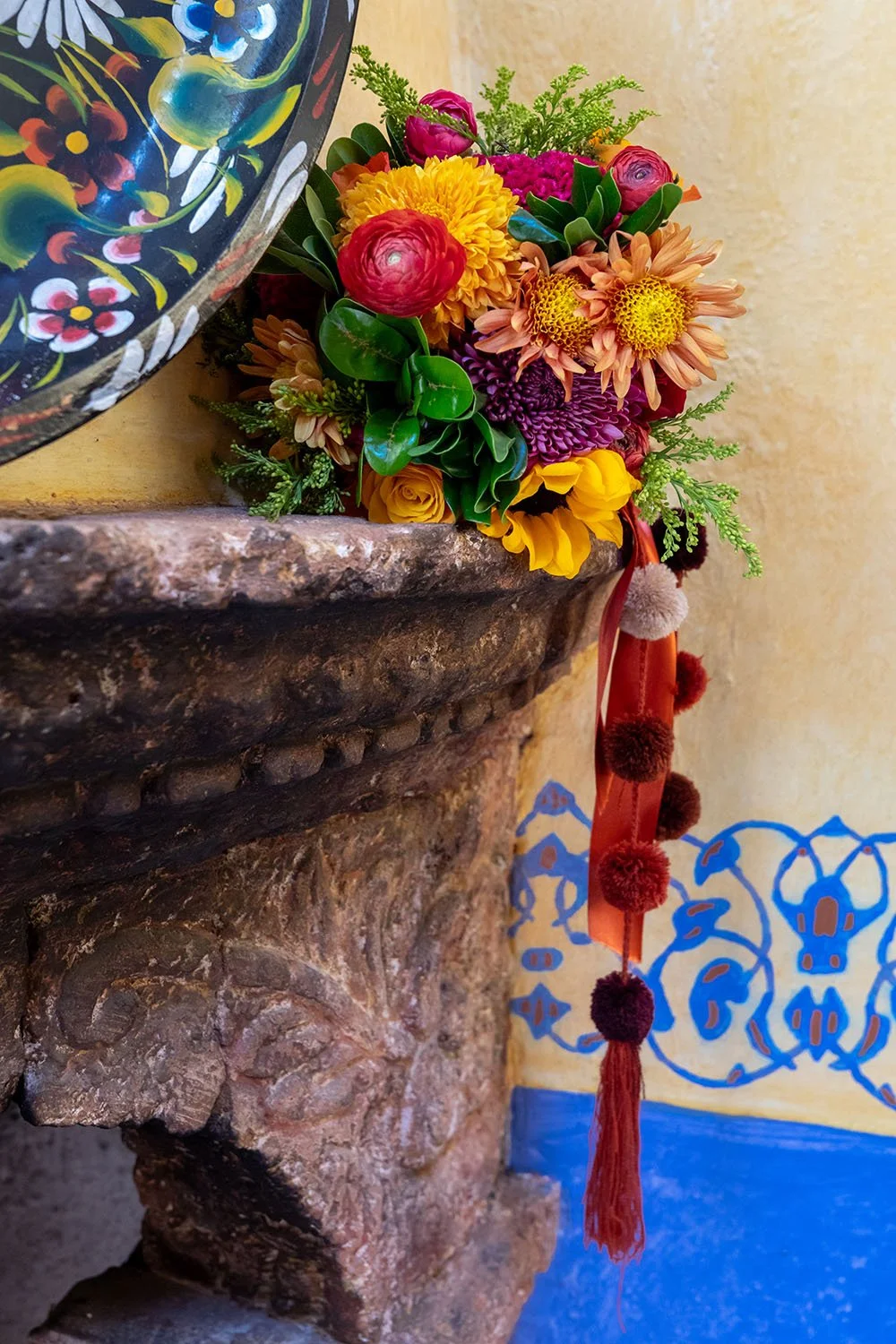 We spent some time taking photos around the house as there were so many amazing spots to do so! Afterwards, we headed out onto the cobblestone streets of San Miguel taking photos. We were lucky to run into some Mojigangas for a few photos. We also ran into the donkey with its colorful baskets of flowers for a few more photos.
